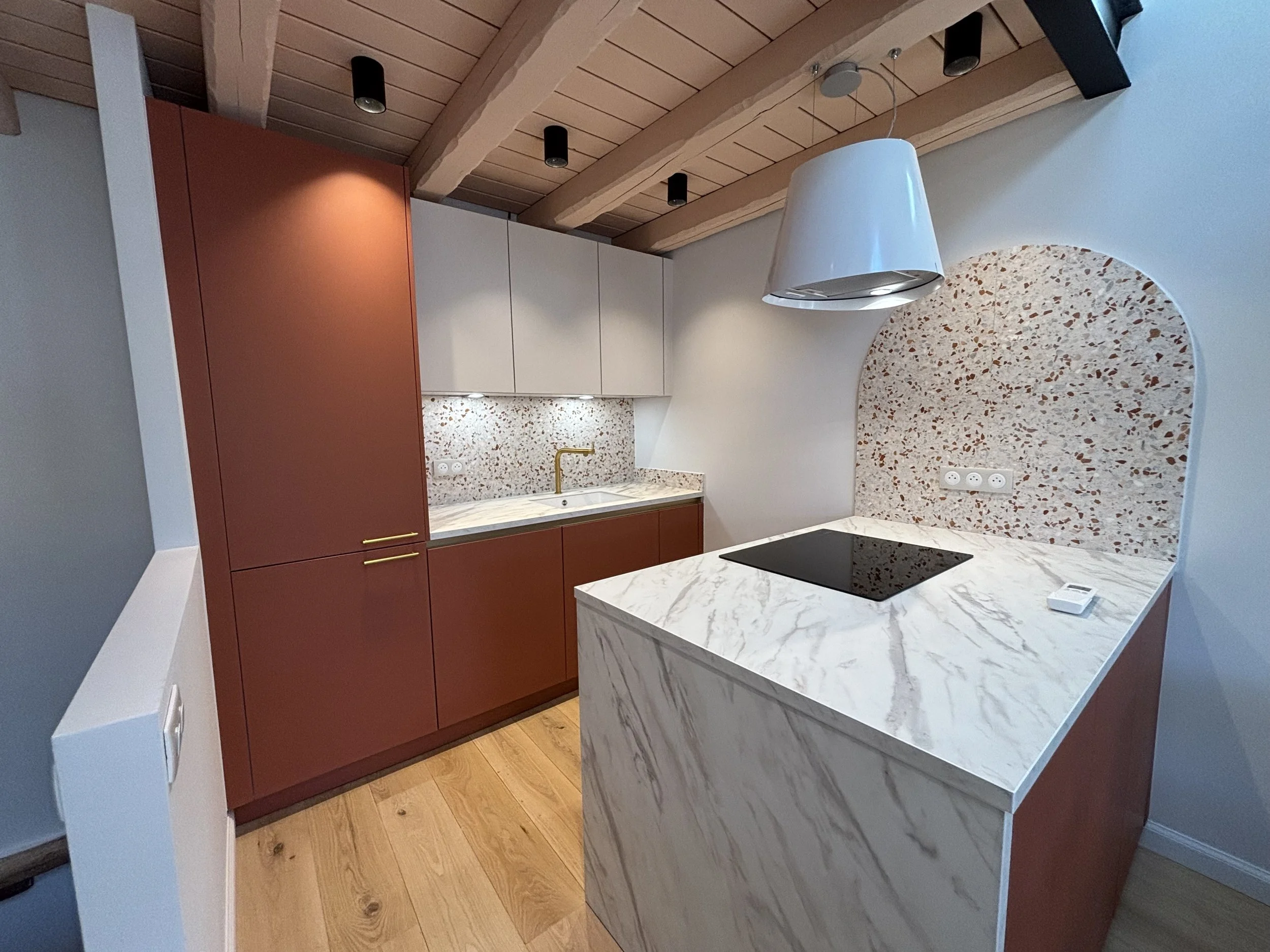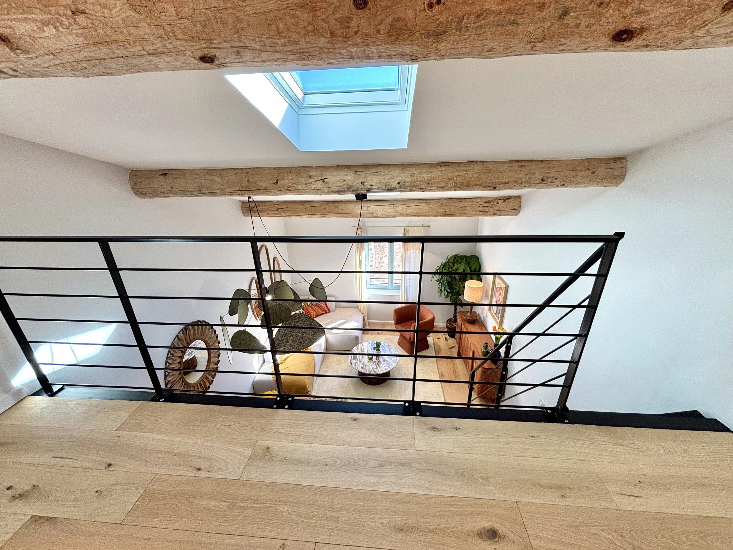 This remarkably bright stone house boasts three fully renovated floors, styled in a contemporary yet trendy design, with great layout, expansive spaces, and impressive ceiling heights. The first floor features a stunning double bedroom with an en-suite shower room and a separate toilet. On the first floor or second level there is a spacious master suite with a dressing room, an en-suite shower room, a separate toilet, and an adjoining smaller room ideal for a study or baby bedroom. The top floor presents a magnificent living room with a cathedral ceiling, a modern fully fitted kitchen, and a spacious living room. The property is enhanced by a mezzanine with a stunning skylights, perfect for an extra bedroom space or storage space. Ideal for year-round living or as a rental investment! Ready to move in—don't miss this opportunity!